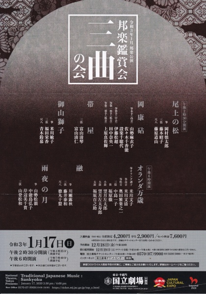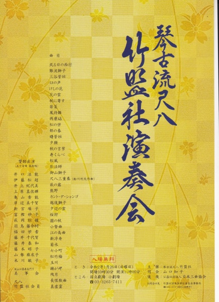 後援:(公社)日本三曲協会、(公財)日本伝統文化振興財団、銀明会